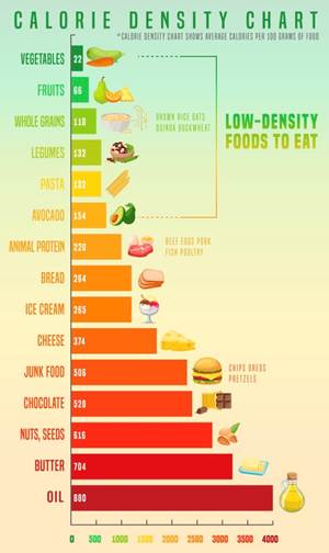 Ako nam je cilj postići kalorijski deficit, bilo bi poželjno unositi hranu sa manje kalorija po 100g, kao što je povrće, voće, piletina, puretina.
